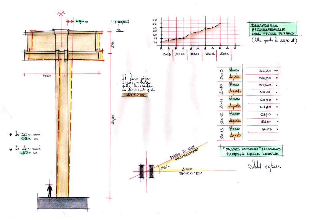 I was a young Architect who was a member of the Building and Urban Planning Commission of the Municipality of Abetone; on March 10, 1995, during the Commission’s meeting, the project presented by the Bishop’s Curia of Pistoia, for the enlargement of the Church of San Paolo Leopoldo drafted by Giovanni Michelucci, (the Maestro had died a few years earlier, on the eve of the great celebration of his 100th birthday) was being discussed. The project was composed of the Maestro’s sketches and presented by Professor Architect Marco Dezzi Bardeschi (see part of the documentation presented in the Building Commission). Roberto Bruni