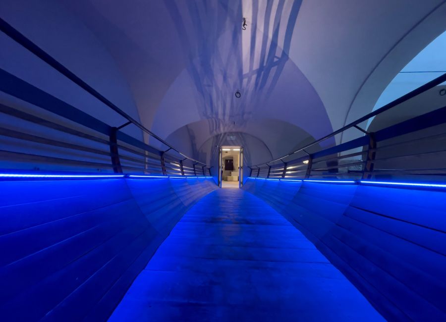 Alcuni elementi posti sul perimetro hanno lo scopo di evitare che la pioggia cada direttamente sullo scanner posto all’ingresso e sulle altre attrezzature di sicurezza.