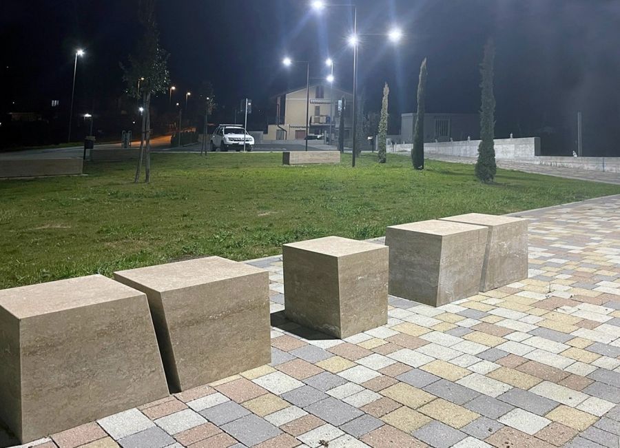 Presentammo 2 proposte, una panchina in legno ed un’altra in metallo. La committenza però voleva qualcosa a “zero manutenzione” e ci chiese una panchina in pietra, magari monoblocco e senza spalliera.