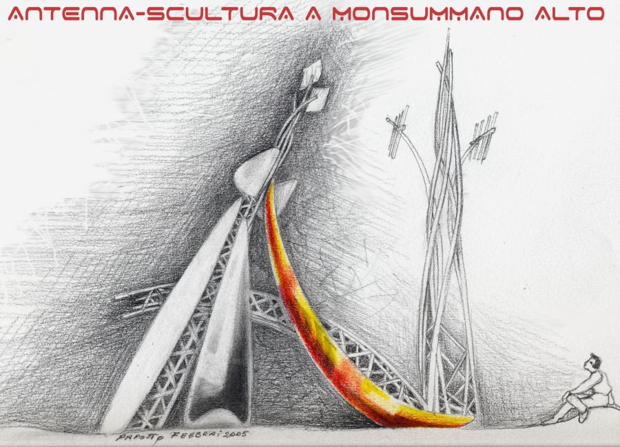Quando un committente privato venne nel nostro studio chiedendoci di redarre un progetto per spostare un’antenna, collocata vicino alla piazza del borgo di Monsummano Alto, vista la peculiarità del luogo suggerimmo di trasformare l’antenna in un’antenna-scultura e collocarla in una posizione che, oltre ad essere funzionalmente idonea, permettesse un armonico dialogo fra l’ambiente circostante e l’antenna – scultura.