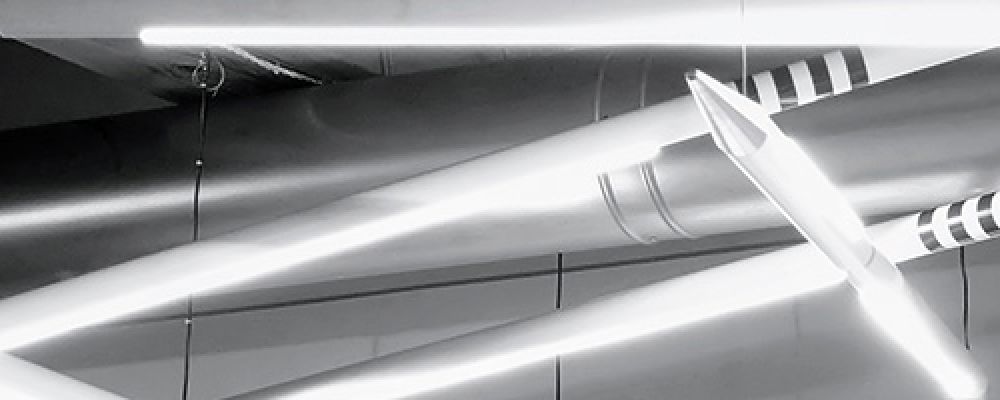 Due “volumi lineari” che creano una struttura tridimensionale il cui dinamismo viene sottolineato dalle ombre generate dal sovrapporsi delle lame che si incrociano. CROSSBLADE.