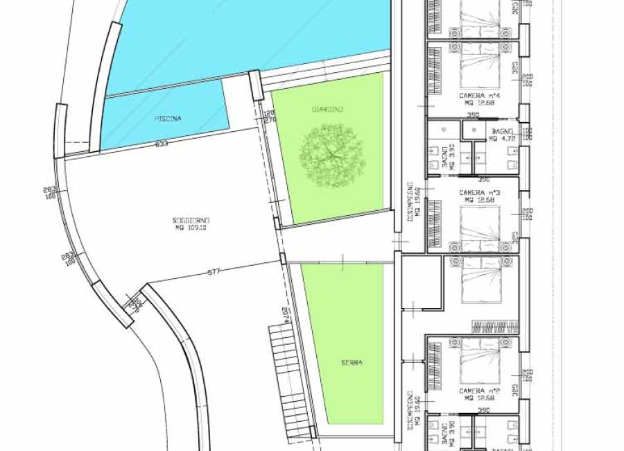 Qui sotto mostriamo il progetto di n.2 ville in fase di costruzione oltre ad un complesso scolastico dove viene previsto l’inserimento di una serra bioclimatica.