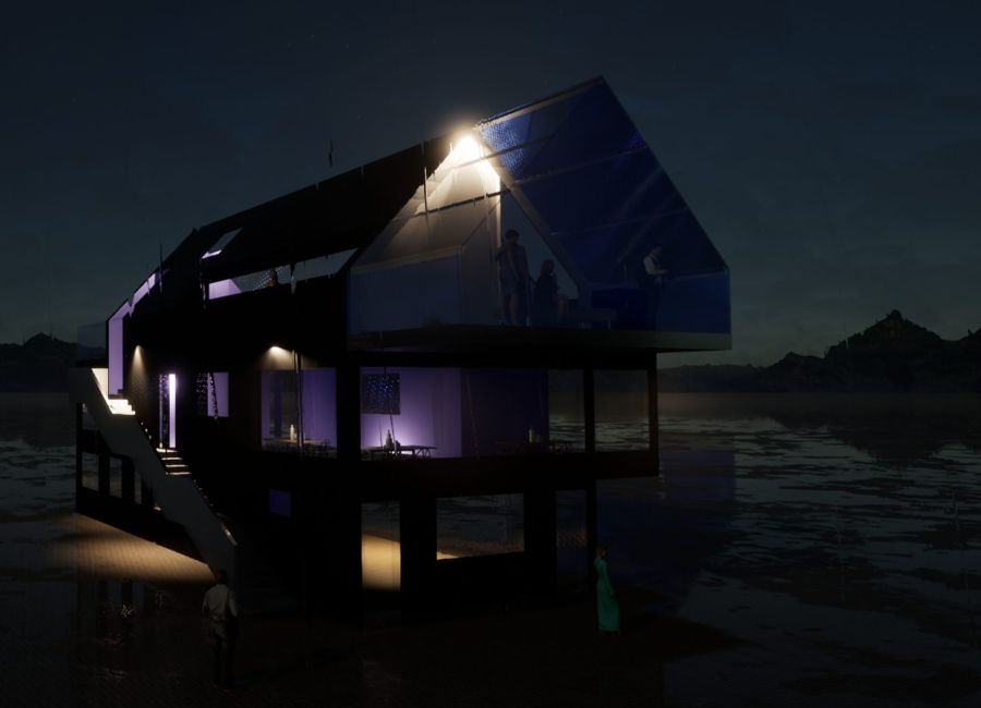 Michele Sarno, un amico conosciuto molti anni fa a Nusfjord (isole Lofoten) mi contattò perché voleva un’idea per un edificio, da costruire vicino alla sua abitazione, da dedicare a laboratorio orafo (a piano terra) e a bistrot (al piano superiore).